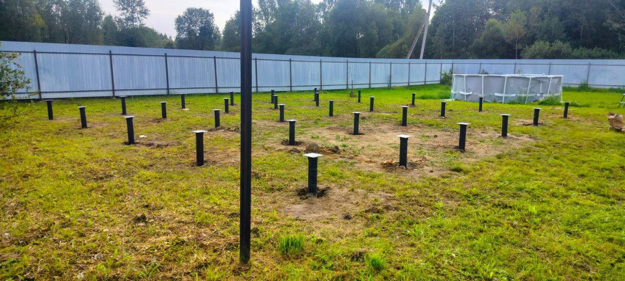Компания "Сваекрутов" успешно завершила проект по строительству фундамента на винтовых сваях для будущего дома размером 10х8 метров. Проект выполнялся на участке заказчика в городе Талдом, Московской области. Главной задачей было создание надежного и прочного основания, на котором в дальнейшем будет возводиться дом. Для монтажа использовались винтовые сваи диаметром 108 мм и длиной 2,5 метра. На каждую сваю был установлен оголовок, обеспечивающий надежное крепление для последующей обвязки фундамента.